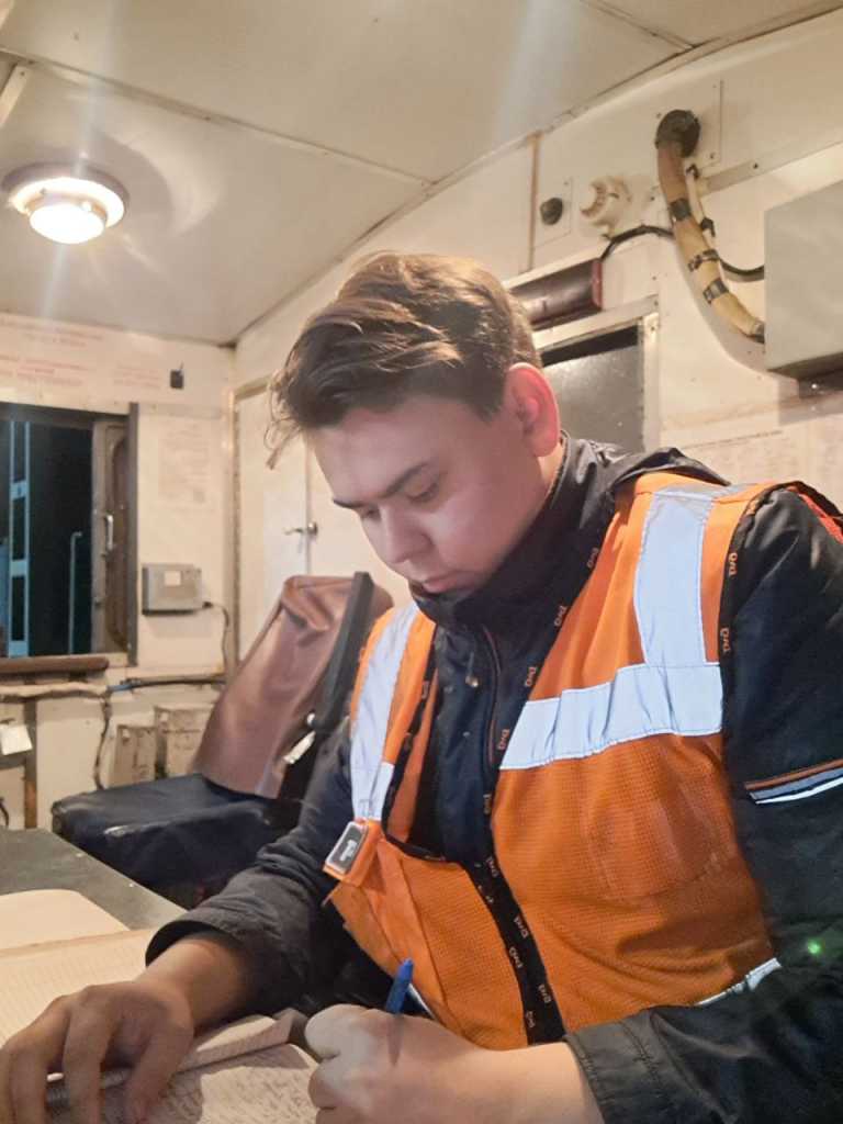 Рабочий день Дмитрия всегда проходит по регламентированному распорядку и зачастую начинается ещё до восхода солнца. «Приходим на работу, получаем инструкции о маршруте, погодных условиях, расписании остановок, принимаем локомотив и отправляемся в путь», - рассказал Дмитрий.