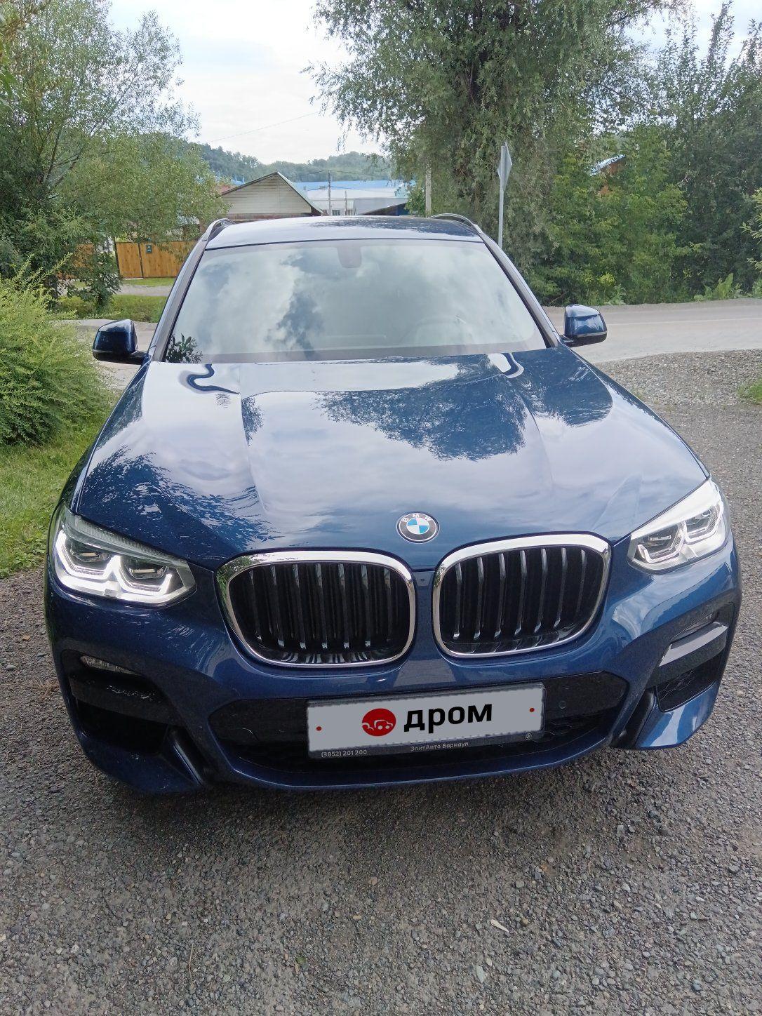 продажу синий BMW X3 третьего поколения в комплектации xDrive 20d AT M Sport за 5,2 миллиона рублей. Автомобиль 2020 года выпуска, с пробегом всего 30 тысяч километров, оснащён дизельным двухлитровым двигателем мощностью 190 лошадиных сил.