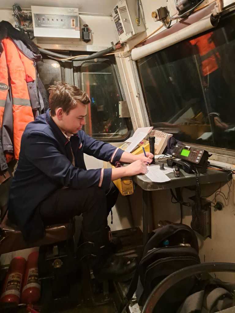 Рабочий день Дмитрия всегда проходит по регламентированному распорядку и зачастую начинается ещё до восхода солнца. «Приходим на работу, получаем инструкции о маршруте, погодных условиях, расписании остановок, принимаем локомотив и отправляемся в путь», - рассказал Дмитрий.