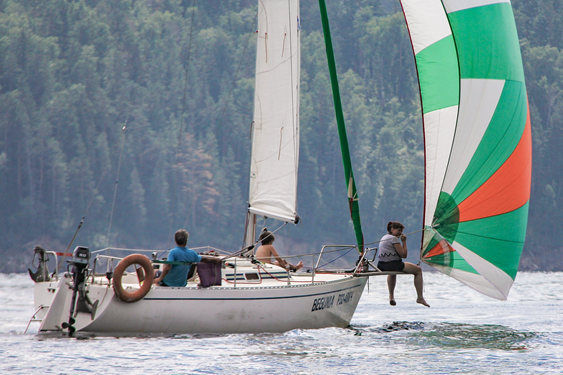 -Где-то около семи. Так как соревнования проходят в несколько этапов, то не все яхты принимают участие. Например, когда выходим в широкую часть – в Красноярское водохранилище, то уже меньше участников.