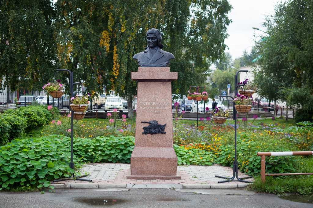 Первый танк с именем «Боевая подруга» был построен в Омске на танковом заводе в 1943 году на средства Марии Октябрьской, которая стала и механиком-водителем этой боевой машины Т-34.